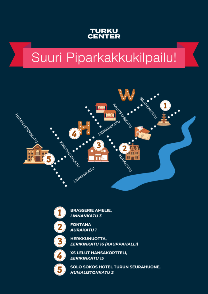 Turun keskustan Suuri Piparkakkukilpailu on taas käynnissä, äänestä suosikkiasi alle olevista. Äänestys on auki 1.-16.12. ja voittaja julkaistaan Turku Centerin nettisivuilla 18.12.